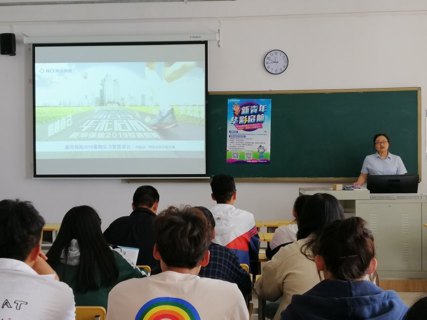 6月5日下午,新华人寿保险股份有限公司呼伦贝尔中心支公司专场校园招聘宣讲会在崇文楼305教室举行,参加本次活动的有新华保险公司人力资源部经理卢冬梅及beats365官方网站各年级员工代表。