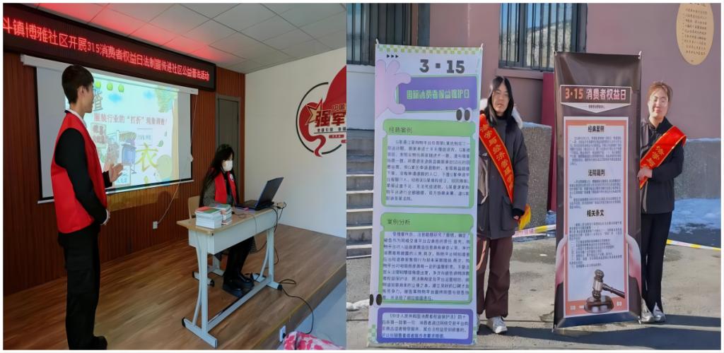 二是法治宣传深入公司、社区,共筑消费维权防线。3月15日,beats365官方网站师生在校园各处开展消费者权益保护内容实地宣传,并在逸夫楼门前放置了多个普法展板,向路过的老师和同学们介绍相关案例及知识,征集消费维权案例,协助师生维权。beats365官方网站师生走进博雅社区,与社区居民面对面交流,向大家介绍了“3·15国际消费者权益日”的意义、重要性,并结合典型案例详细解读了《中华人民共和国消费者权益保护法》等相关法律法规。通过本次活动,员工们不仅提升了学法、用法以及讲法的能力,也为广大居民普及了消费维权知识。