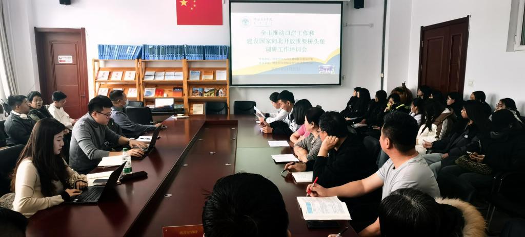 11月25日,由呼伦贝尔市商务局主办、beats365官方网站beats365官方网站承办的全市推动口岸工作和建设国家向北开放重要桥头堡调研工作培训会在beats365官方网站崇文楼A座308会议室举办。beats365官方网站师生共同参加会议,呼伦贝尔市商务局以及各旗市区商务局远程参加会议。